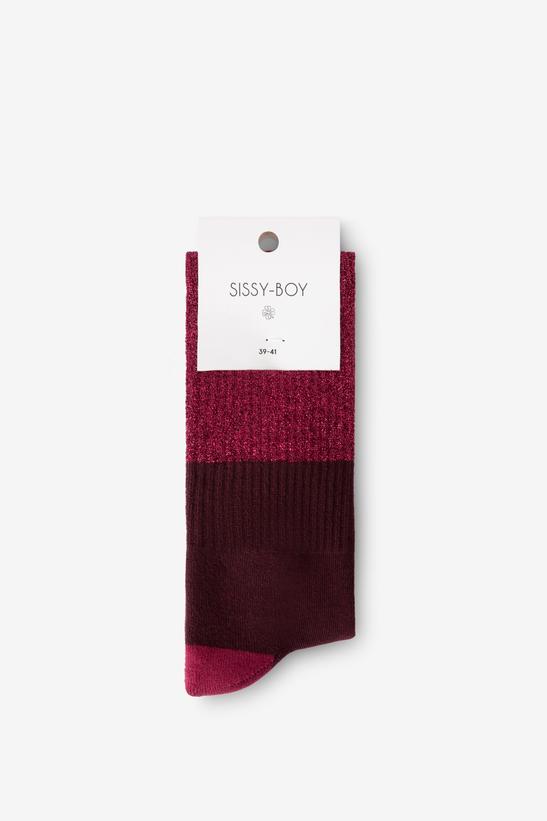 Donkerrode glittersokken met rib