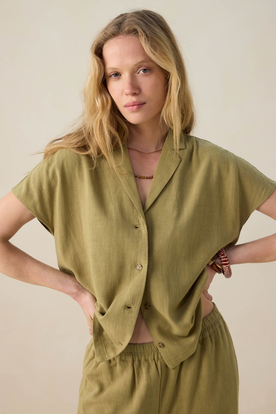 Groene blouse met korte mouwen