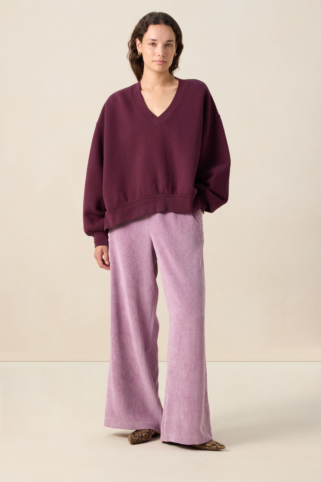 Donkerrode velvet wide leg broek