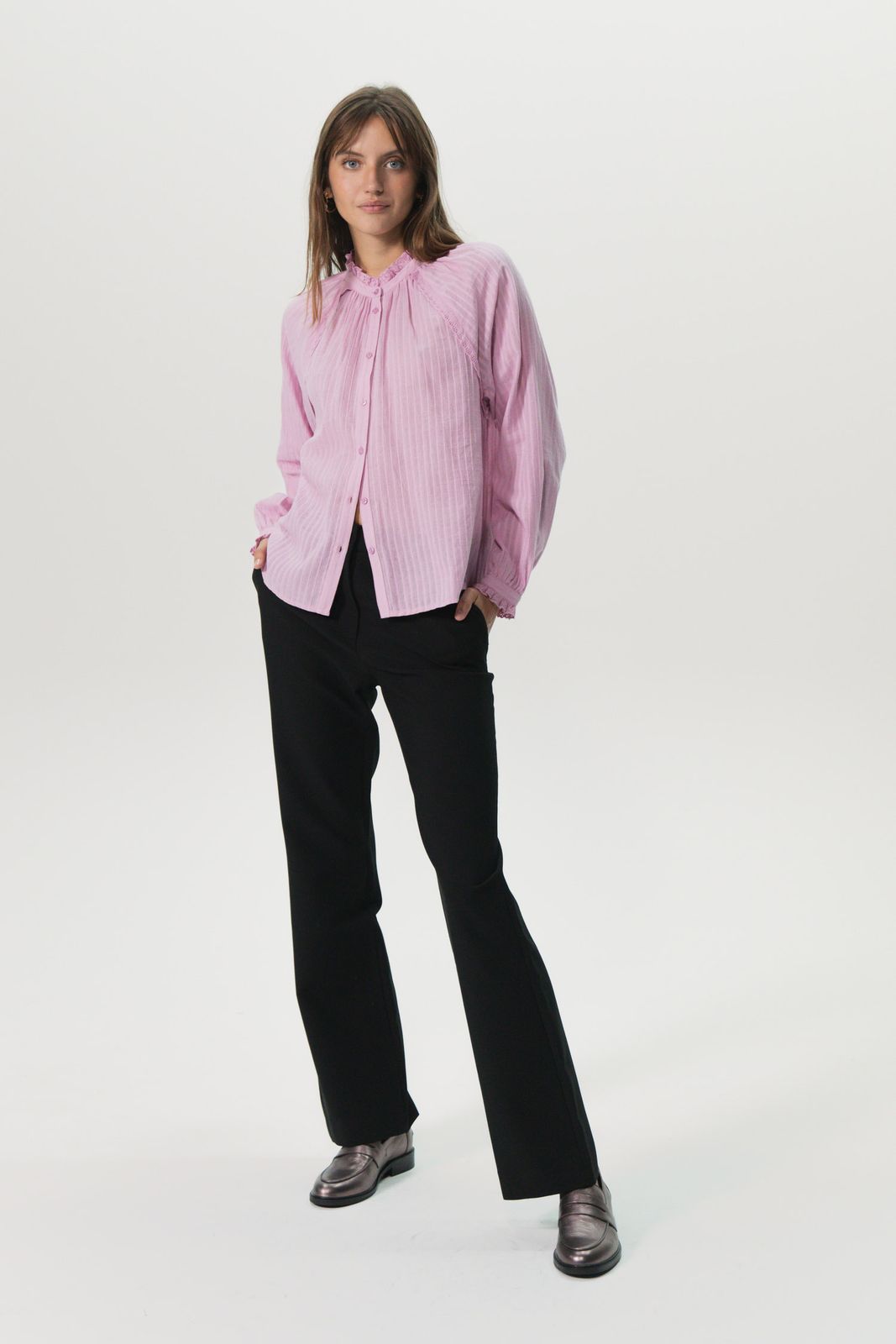 Lichtpaarse high waist corduroy broek