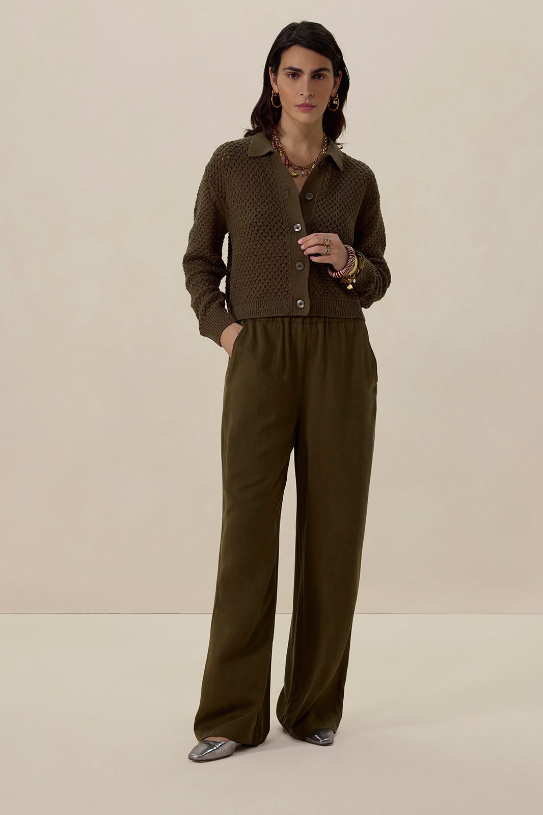 Donkergroene high waist wide leg broek