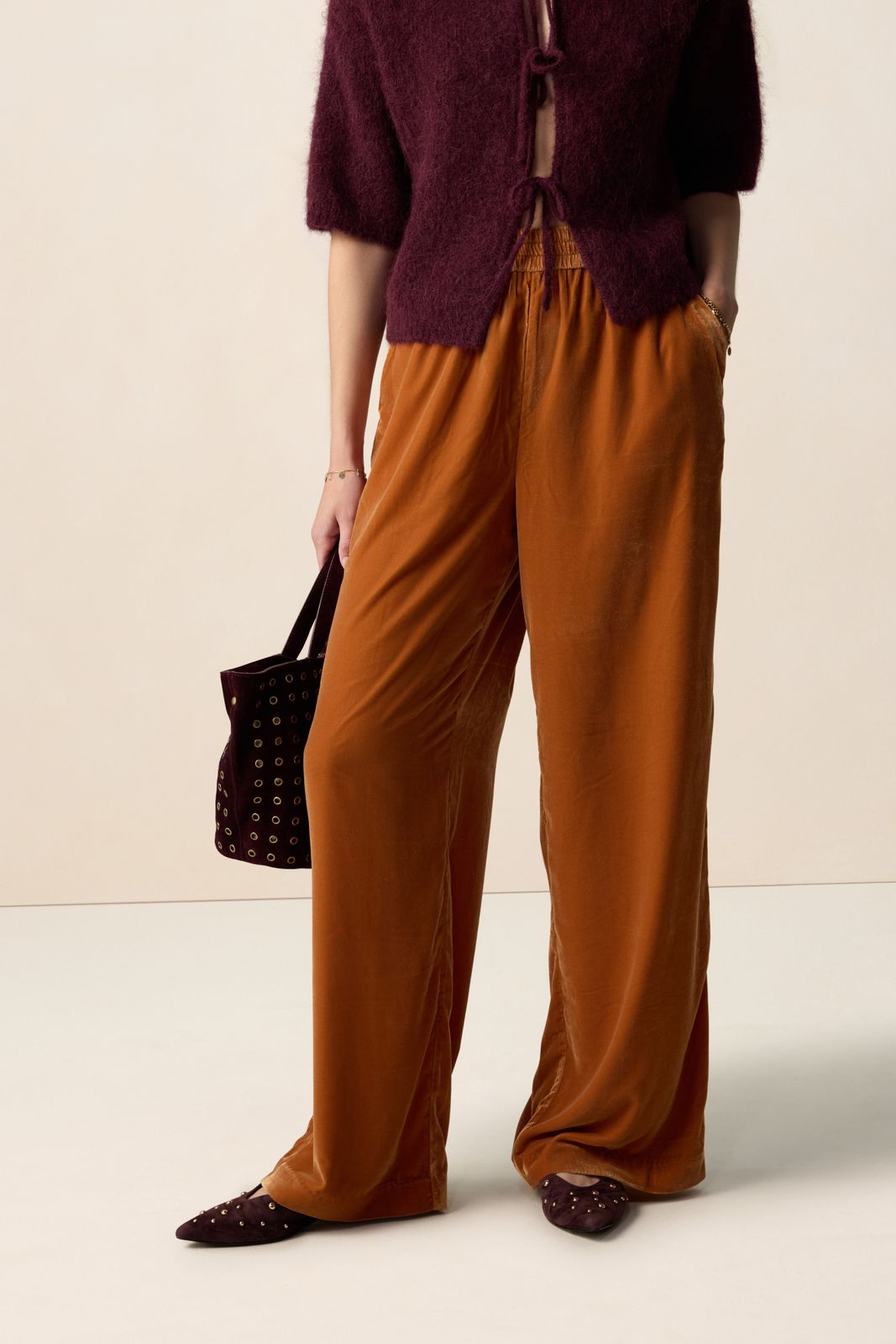 Oranje velvet wide leg broek