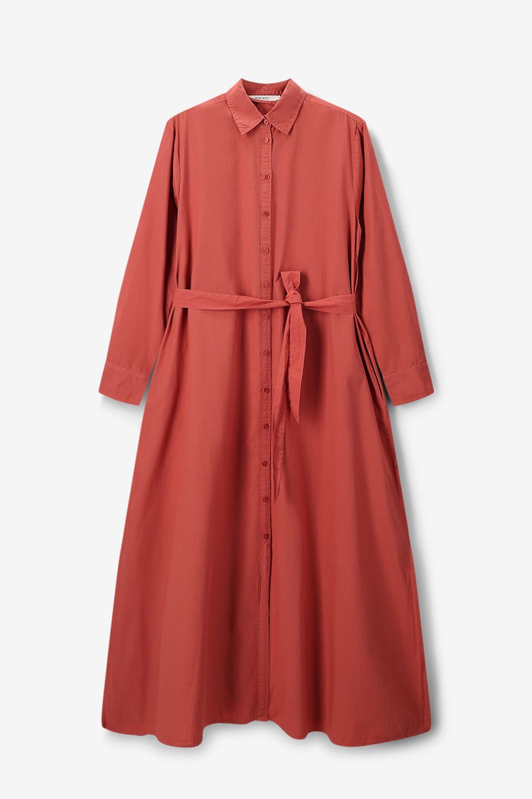 Donkerrode midi jurk met ceintuur