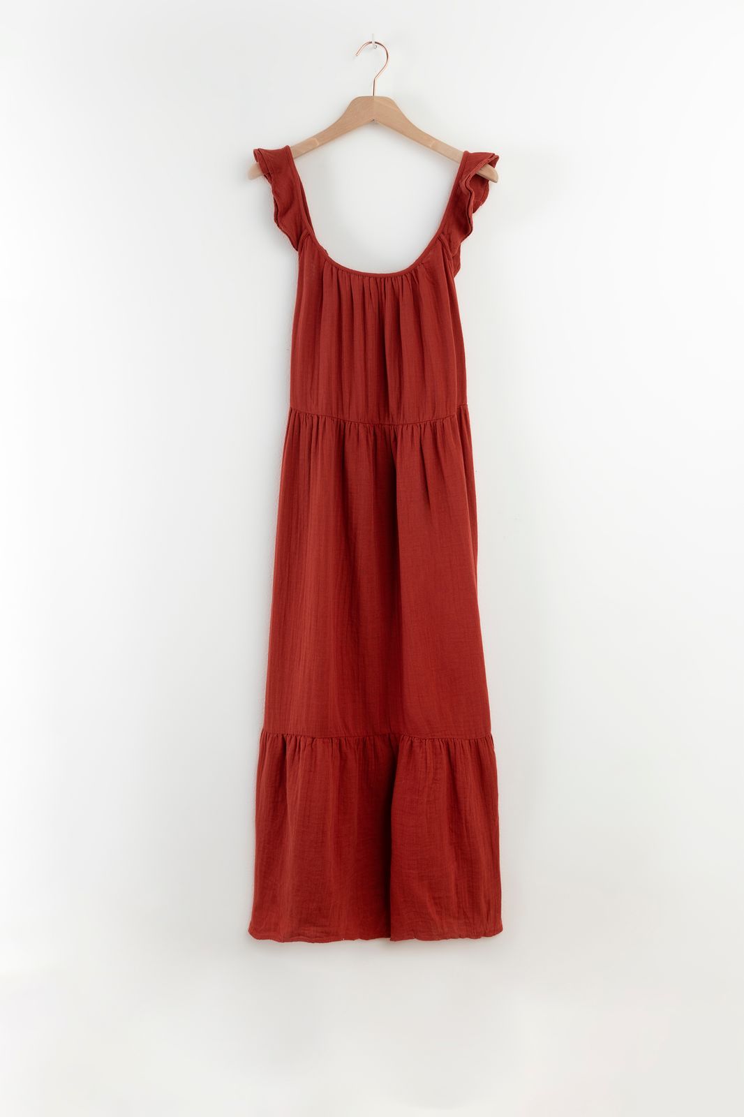 Rode A-lijn maxi jurk met ruffle details