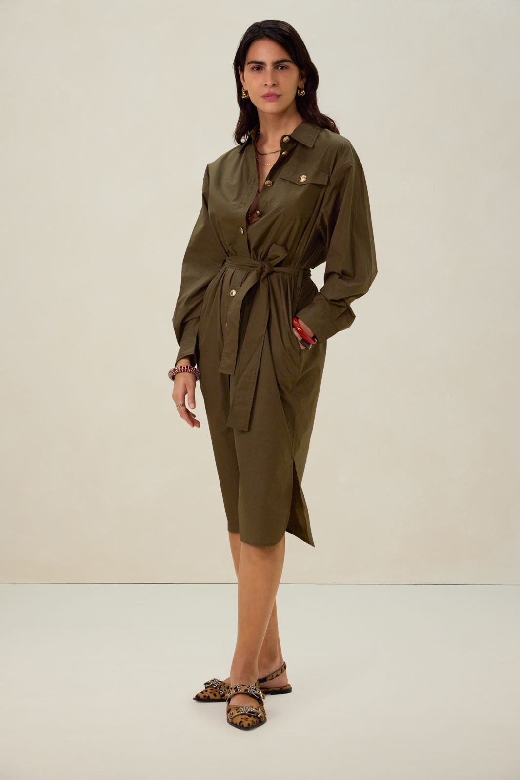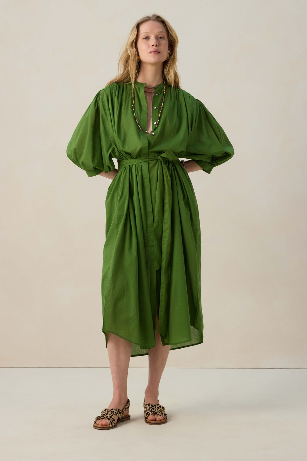 Groene jurk met ceintuur
