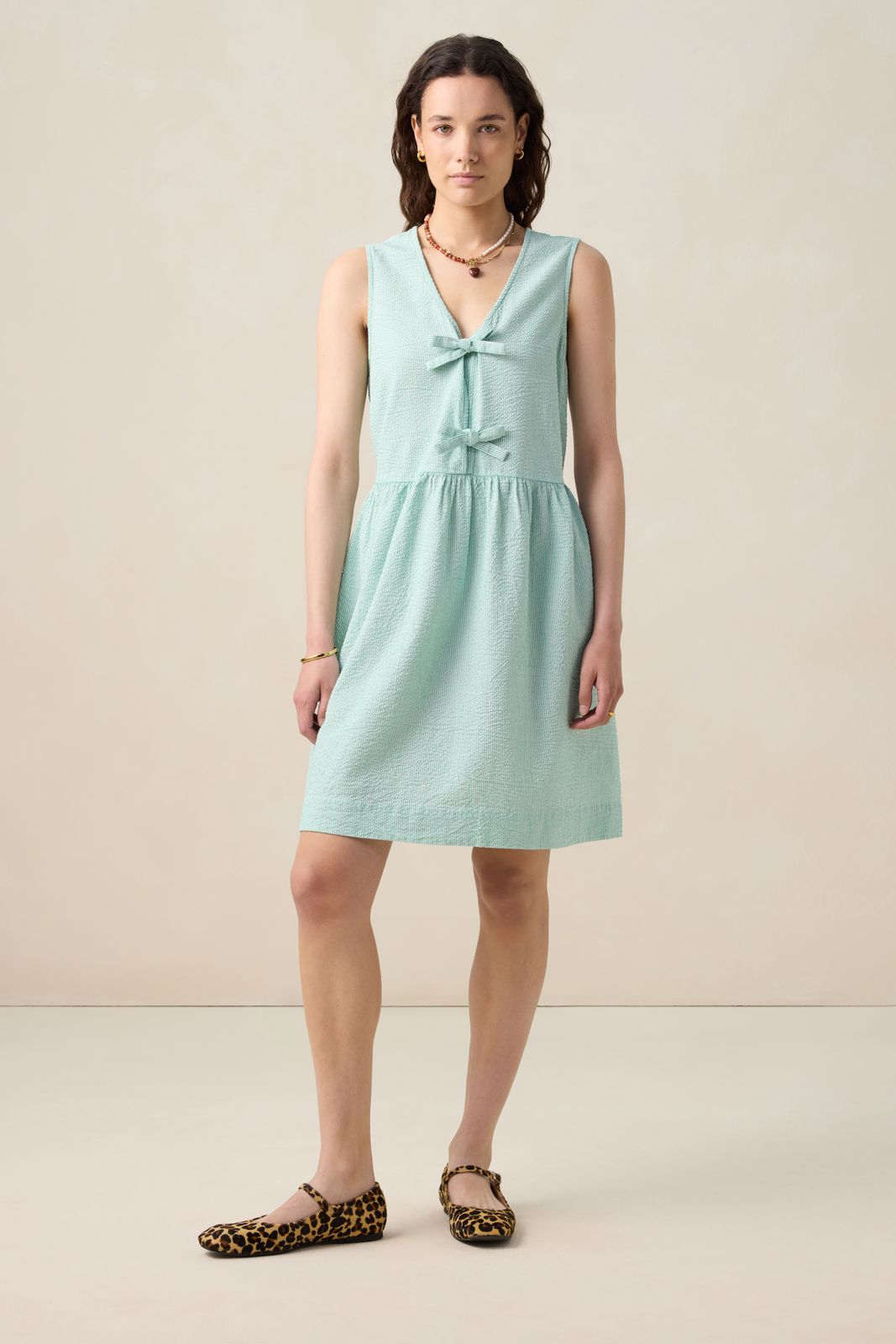 Groene gestreepte mini-jurk