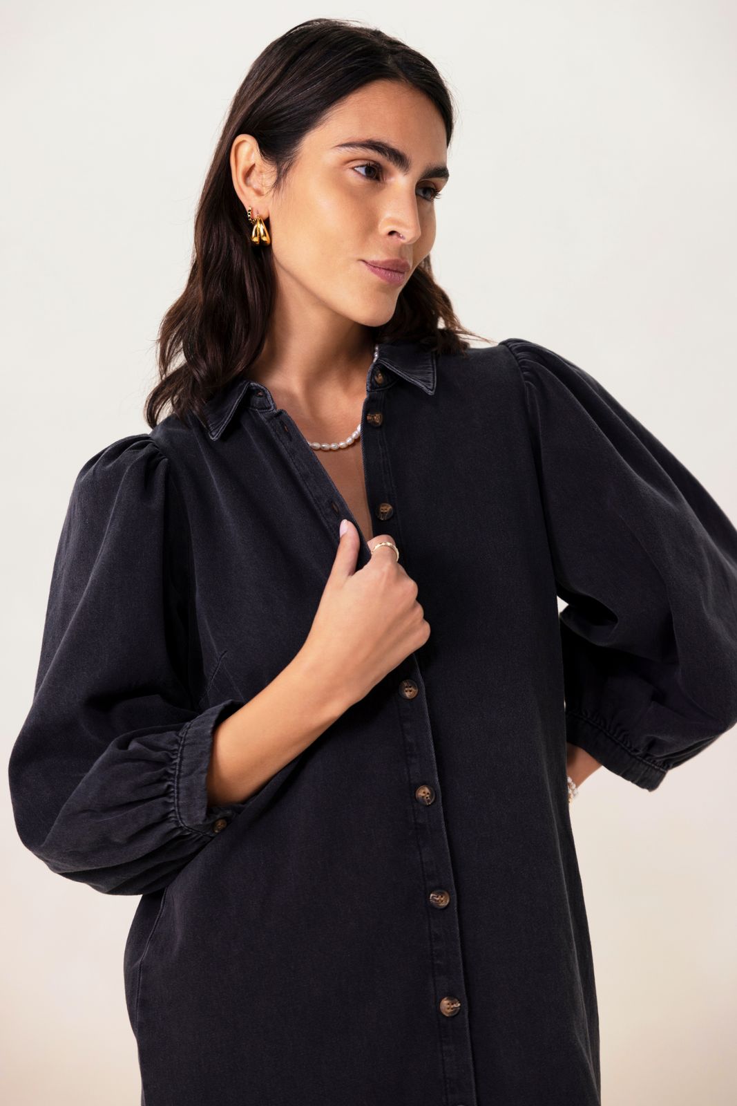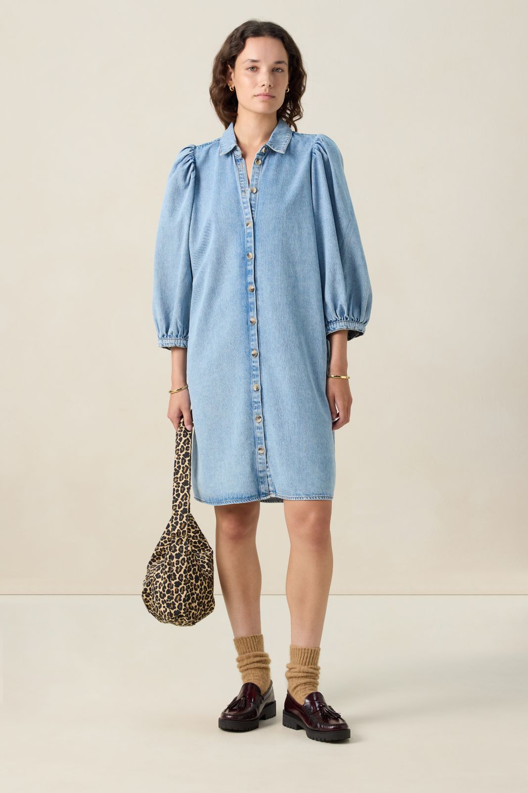 Blauwe denim jurk met pofmouwen