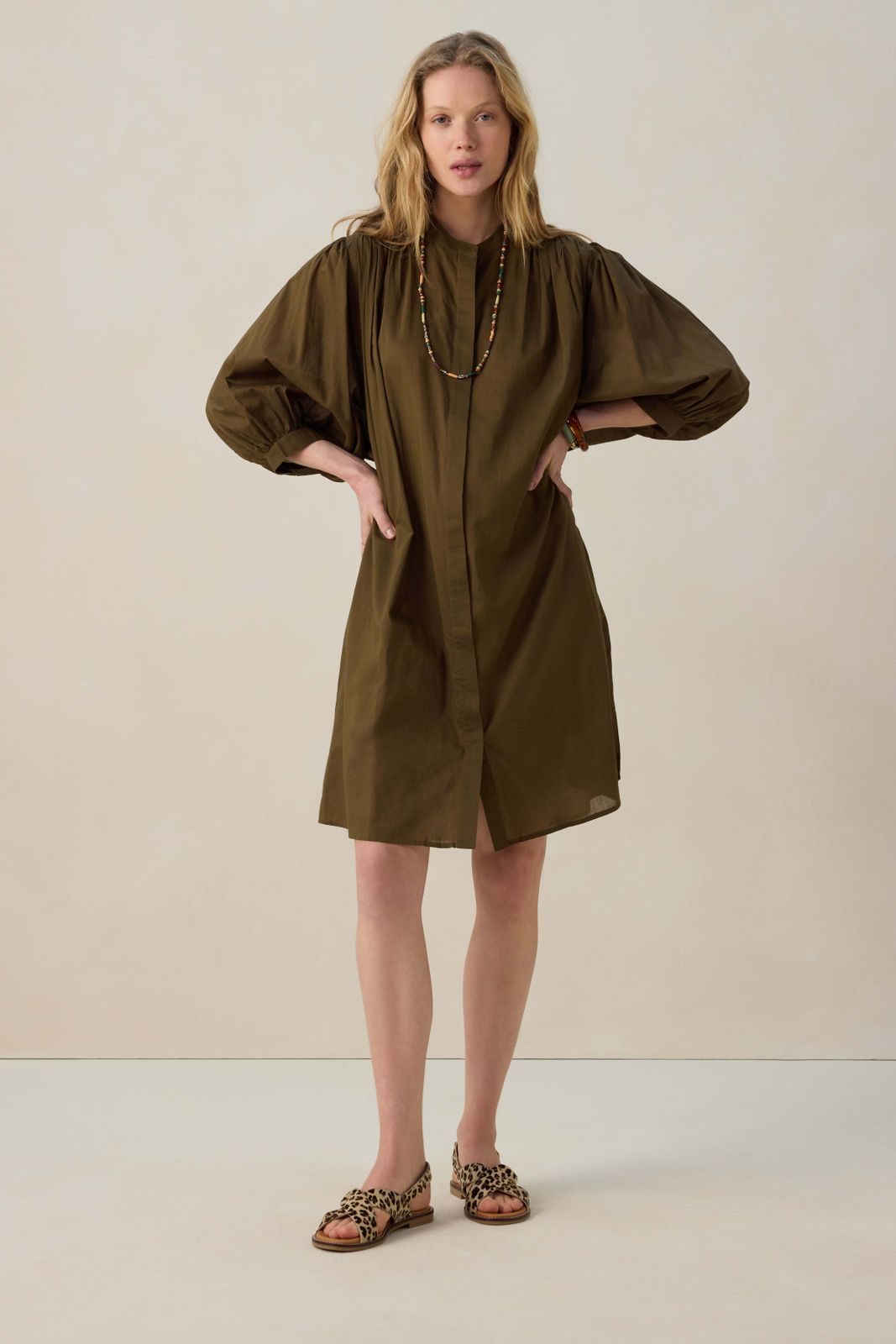 Goudbruine midi jurk