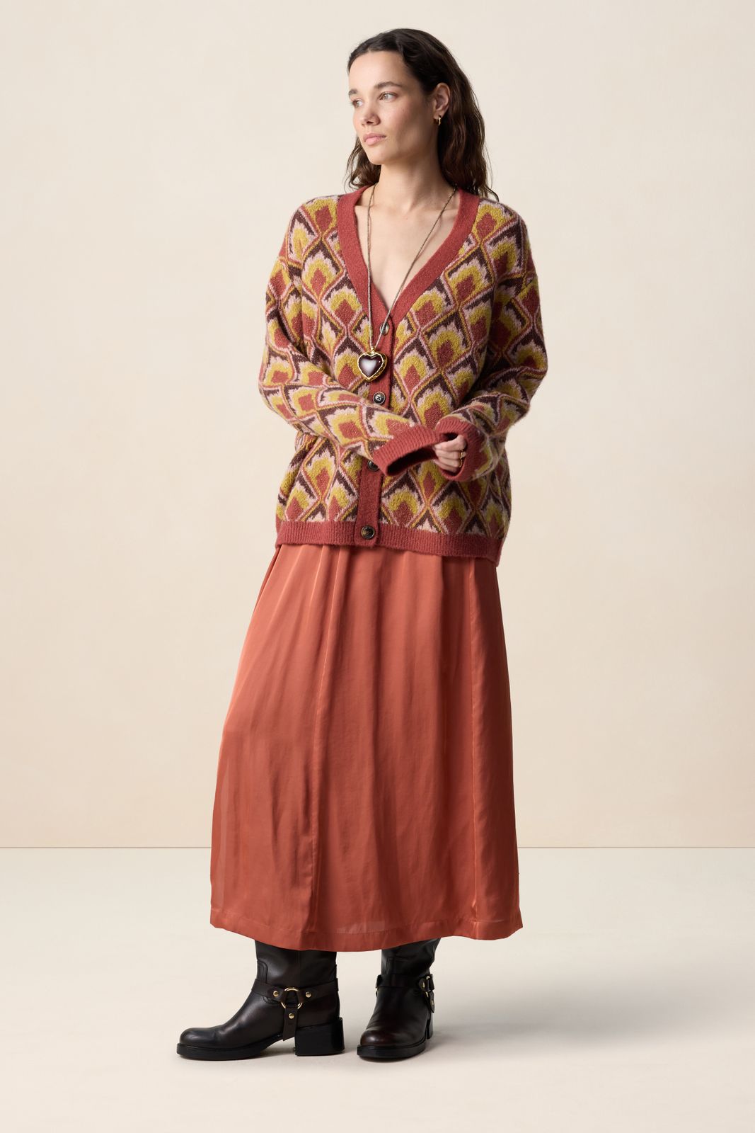 Donkeroranje geplooide maxi rok