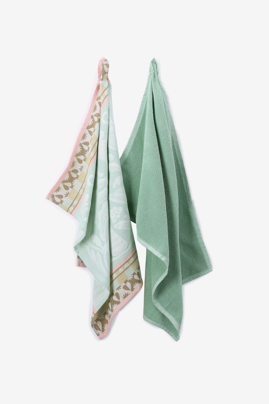Lichtgroene handdoek en theedoek