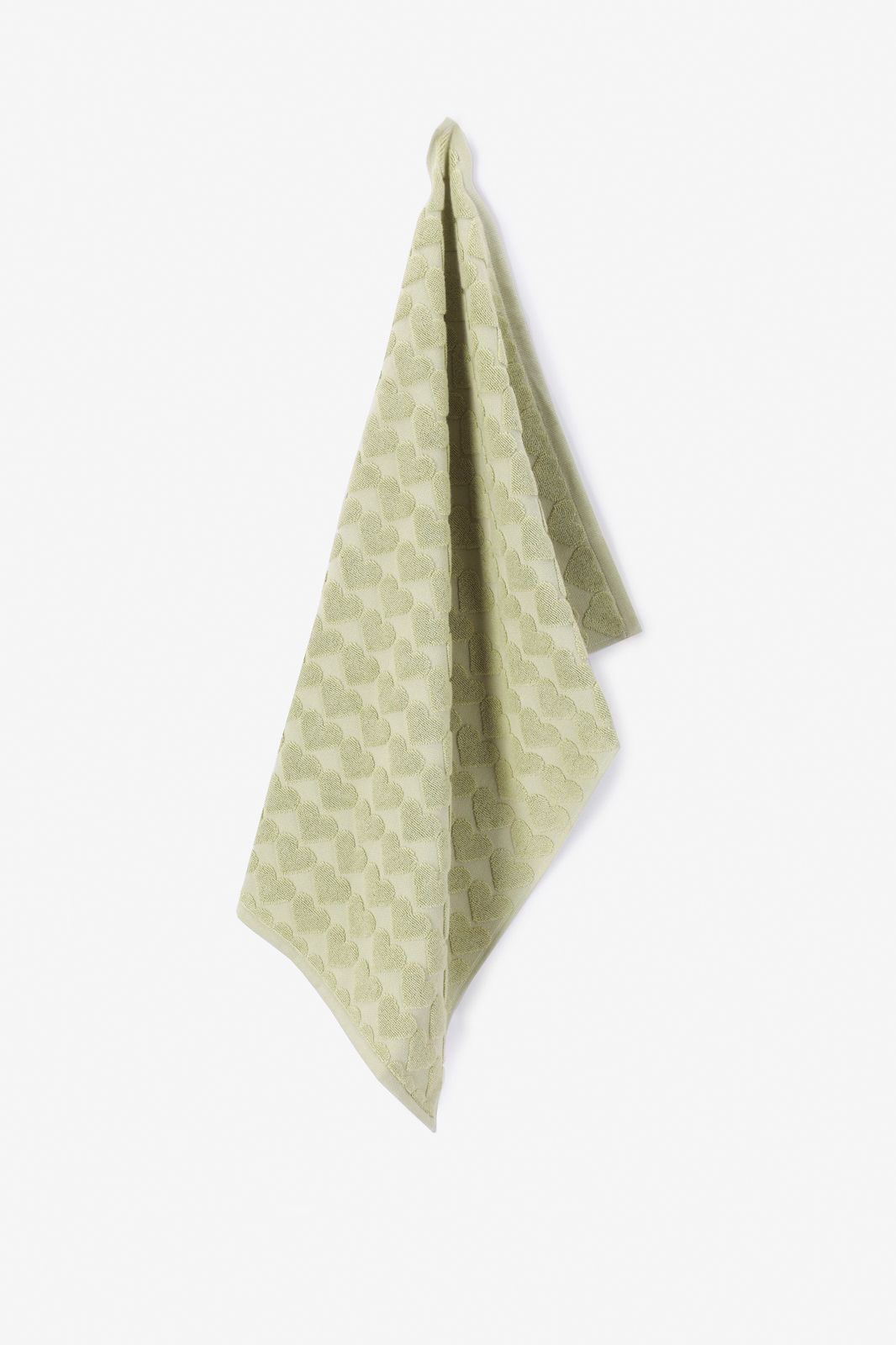 Lichtgroene handdoek met hartjes print