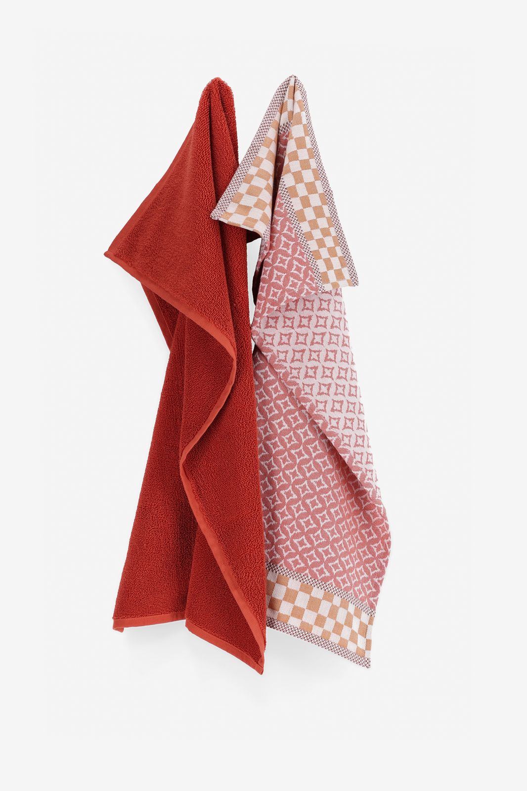 Donkeroranje handdoek en theedoek