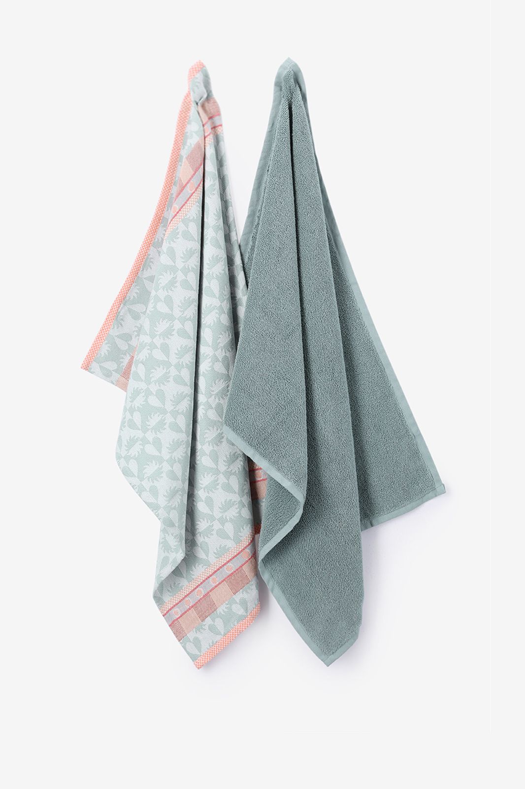 Groenblauwe handdoek en theedoek terry