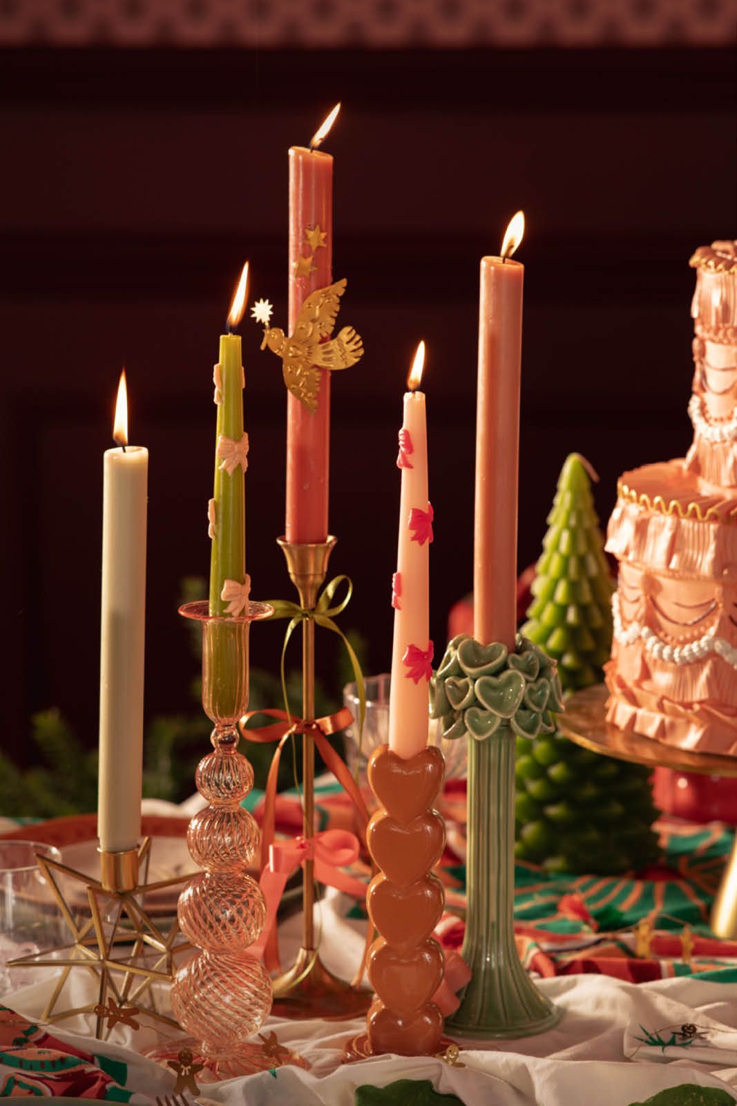 Groene sierkaarsen met strikjes