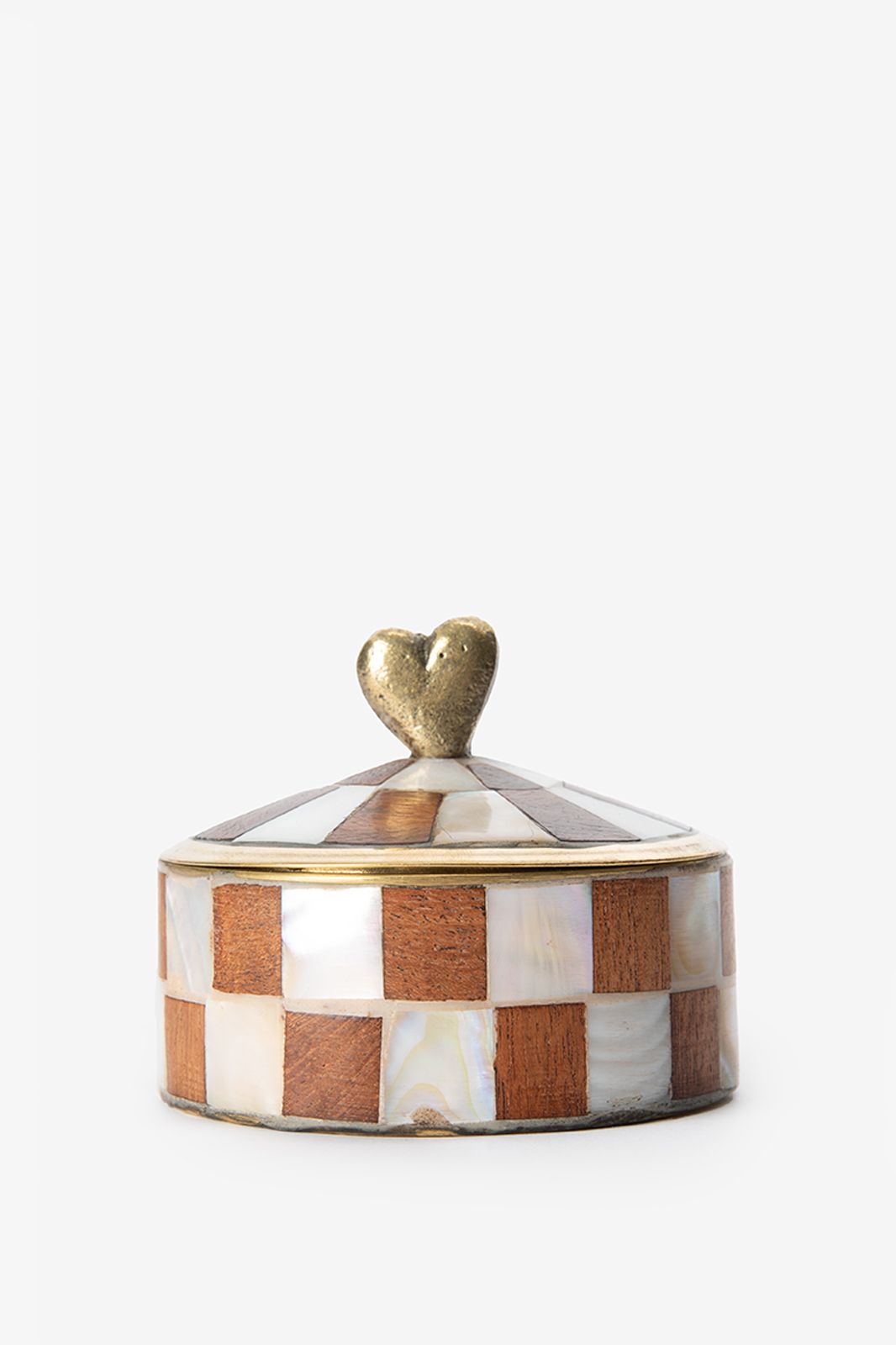Lichtbruin geblokt messing doosje