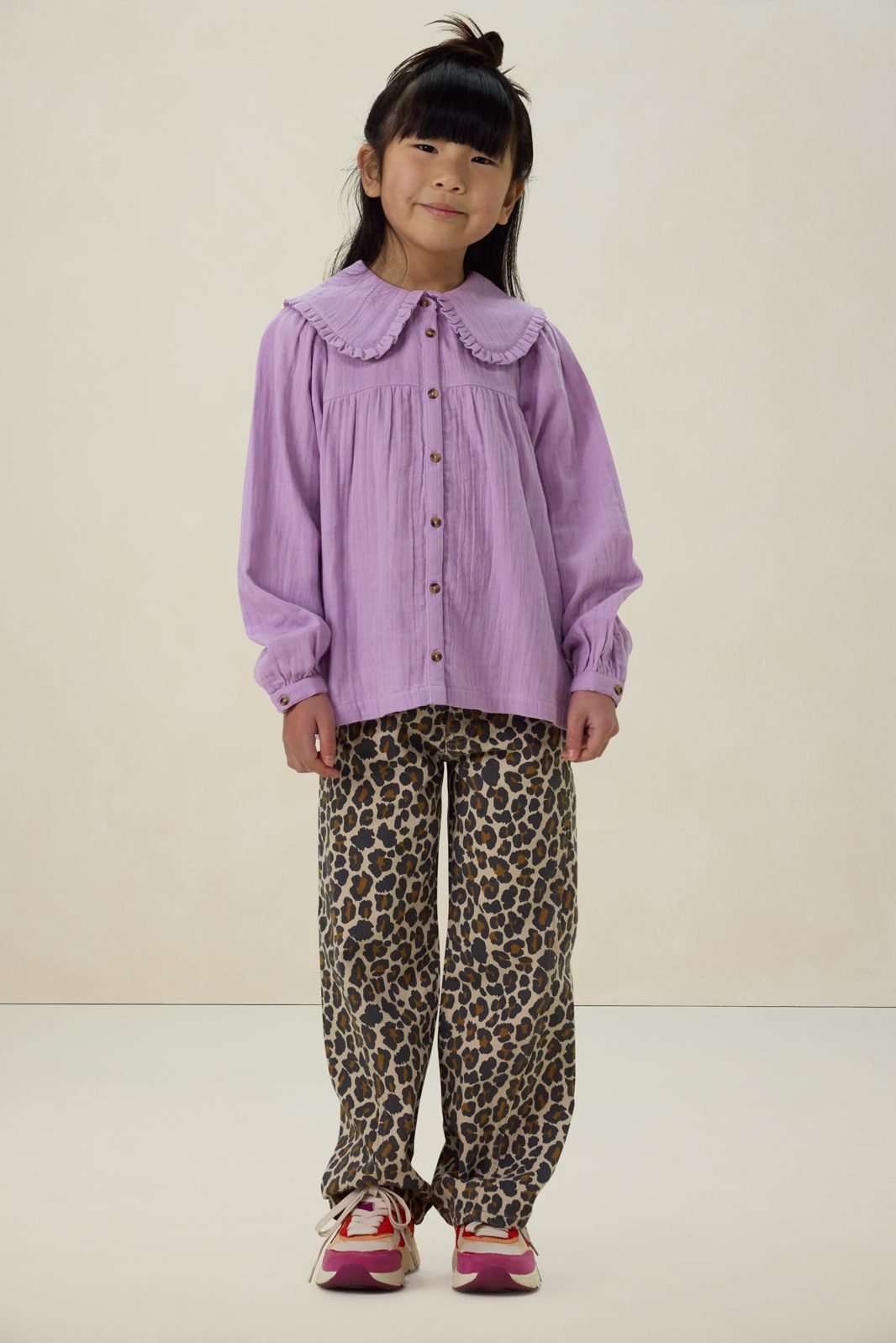 Lichtpaarse blouse met kraag