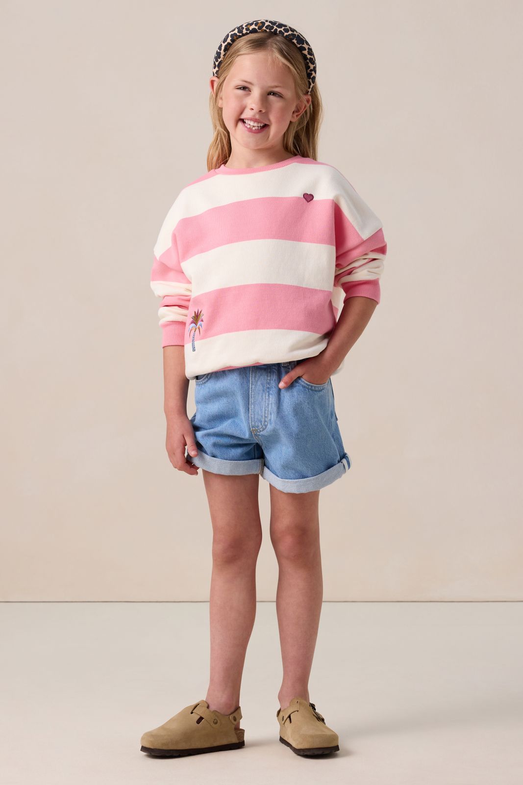 Blauwe gestreepte short met embroidery