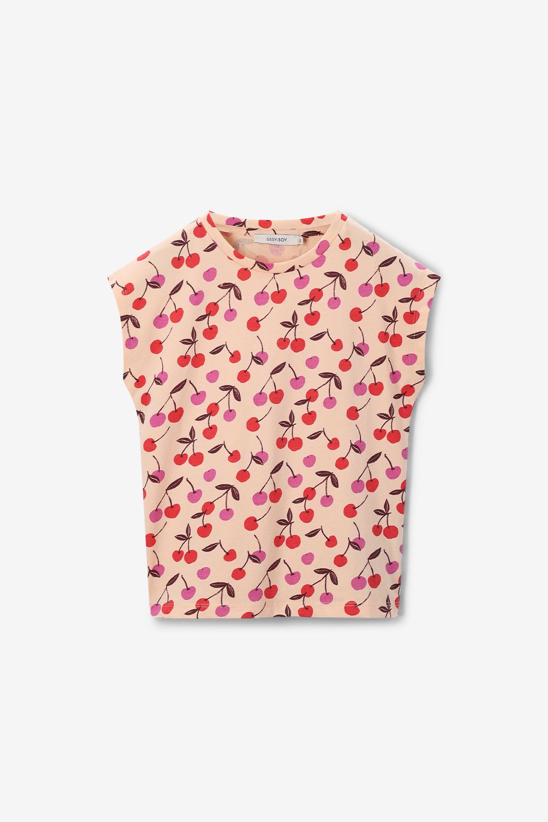 Lichtoranje T-shirt met kersen print