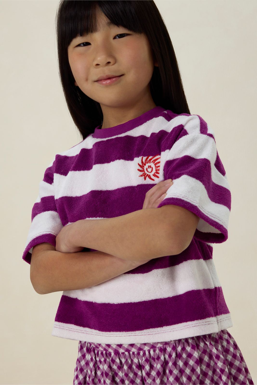 Paars gestreept badstof t-shirt