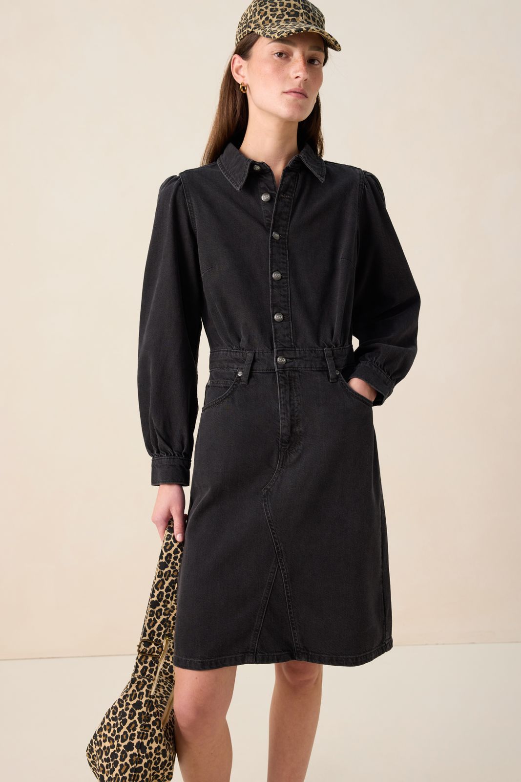 LEE Donkergrijze midi denim jurk