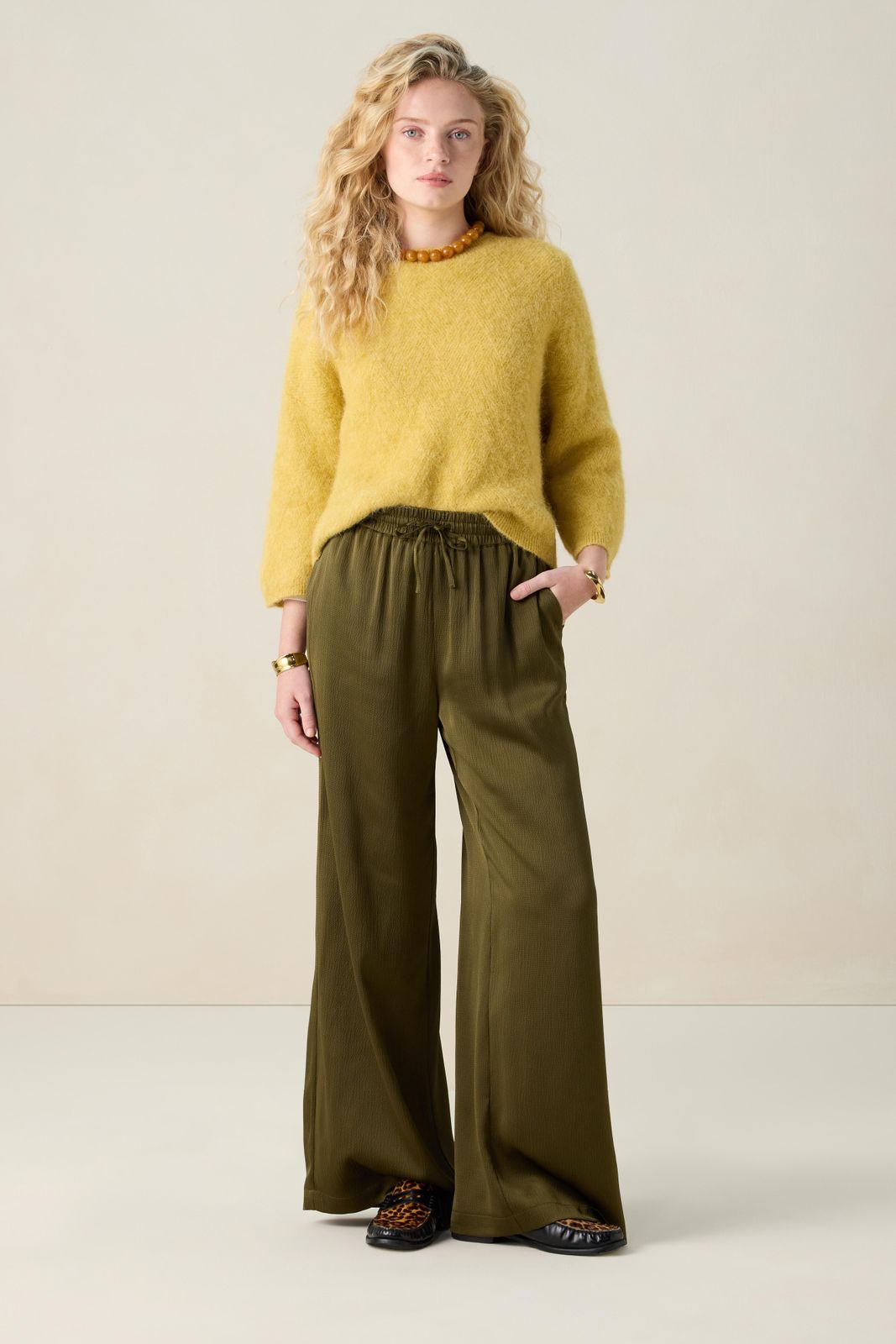 Bruine high waist wide leg broek