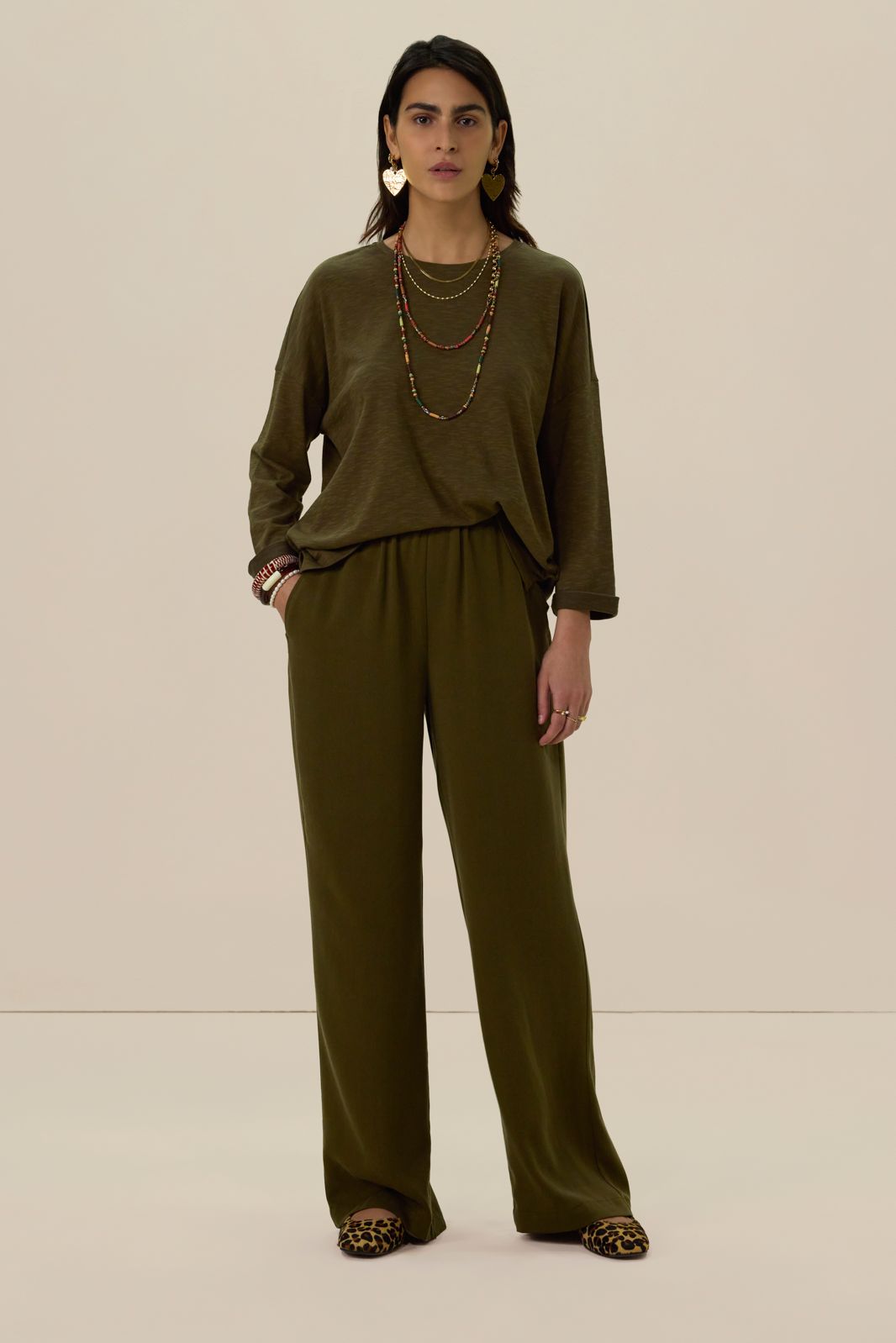 Donkergroene high waist wide leg broek