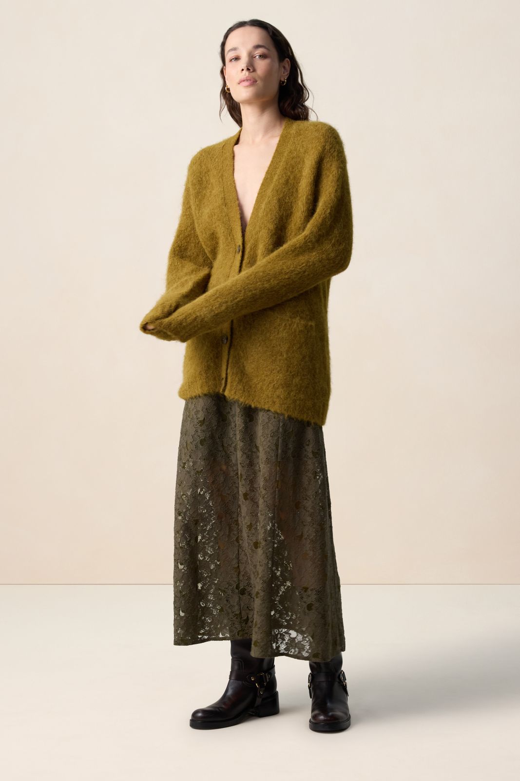 Donkergroene kanten maxi rok
