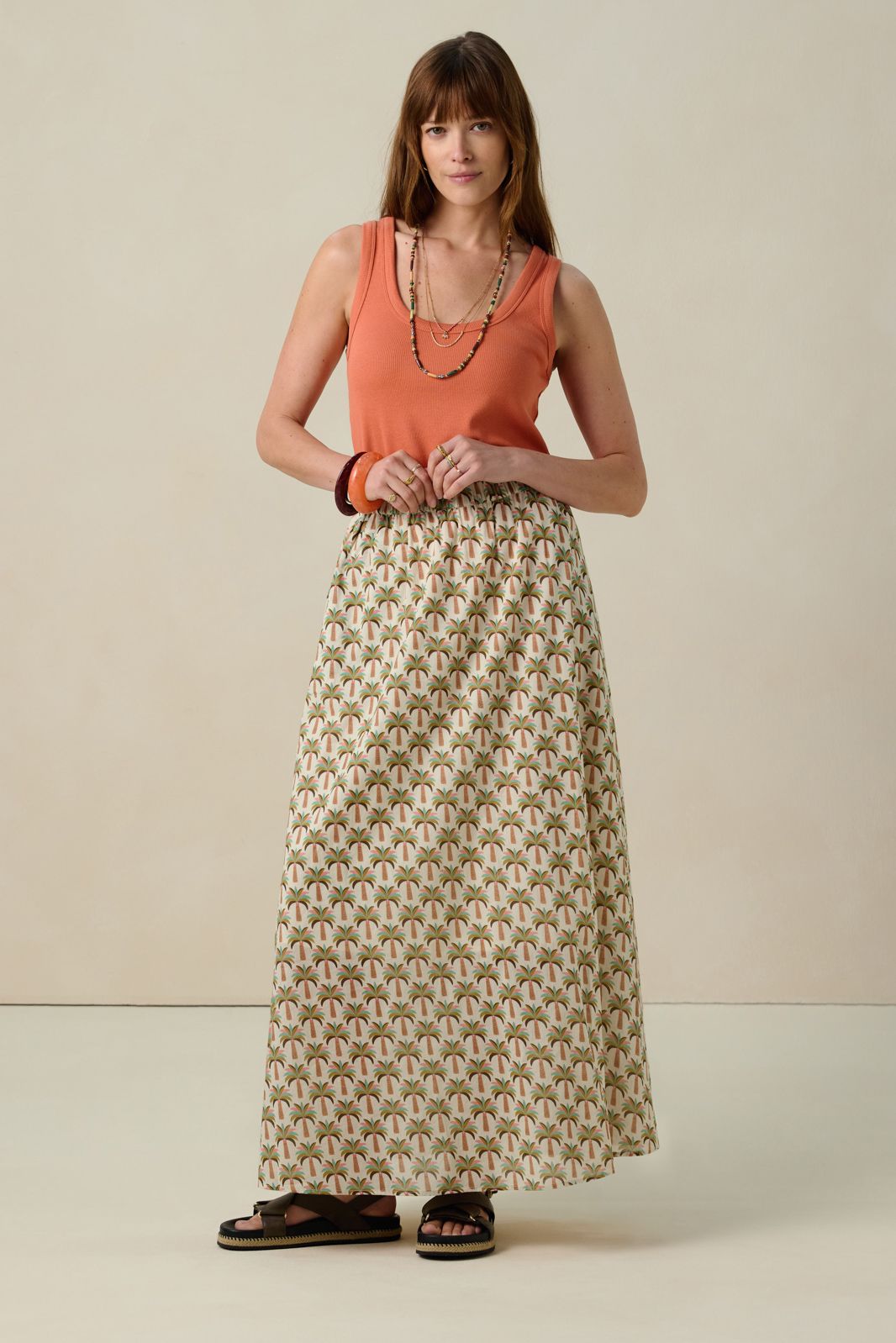 Multicolour maxi rok met palmboom print