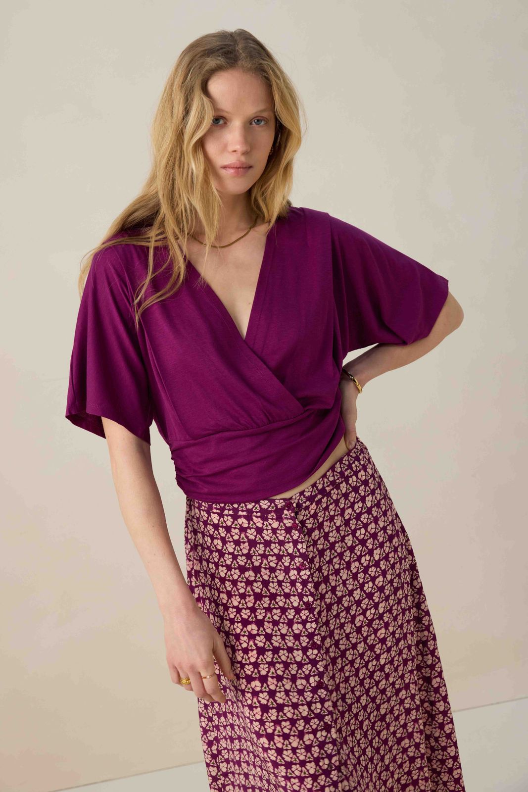 Donkerpaars T-shirt met overlapping