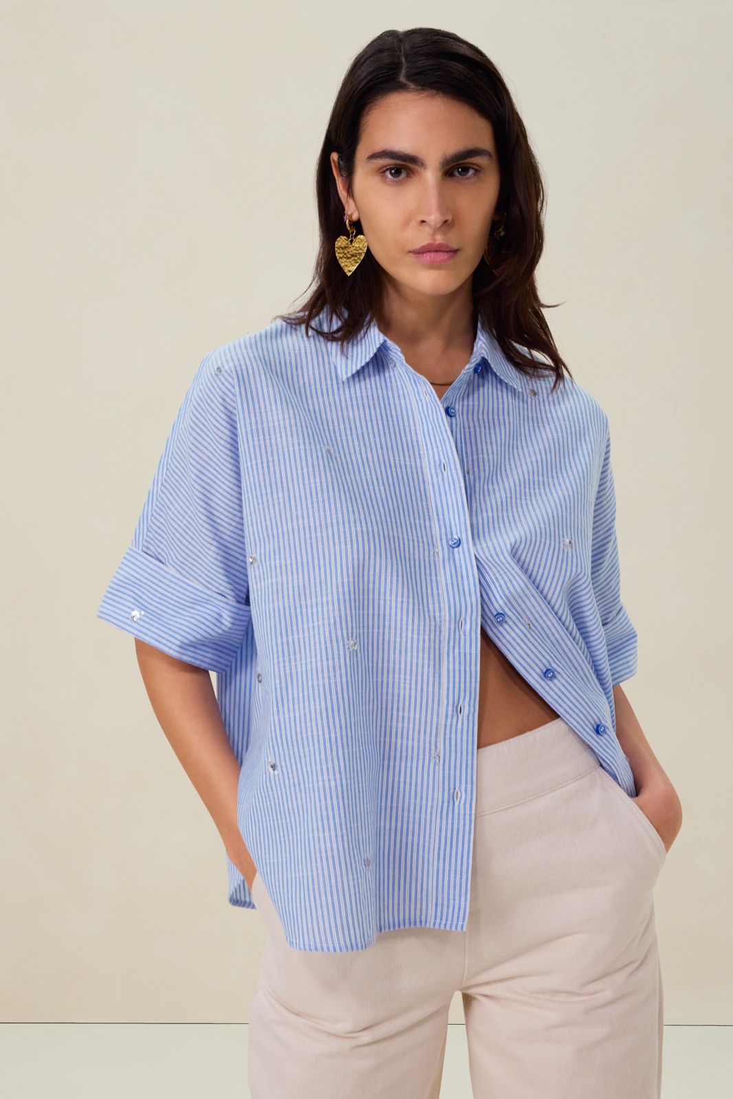 Blauwe blouse met pailletten details