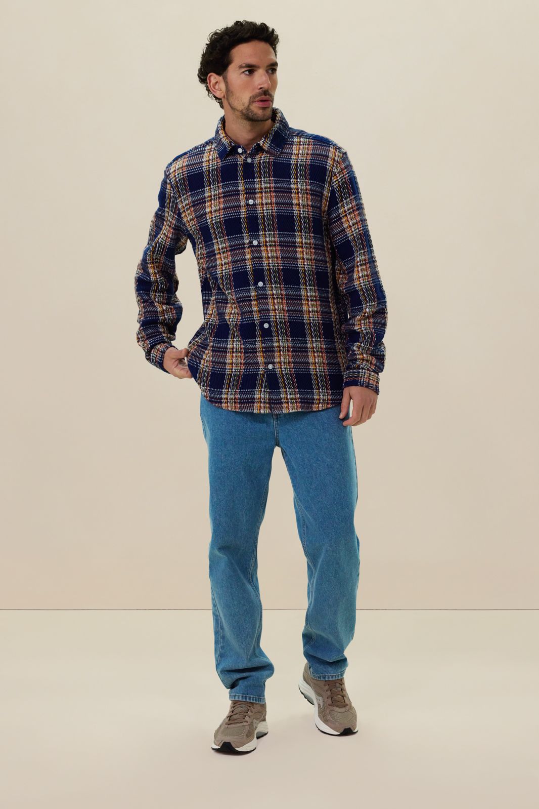 Donkerblauw geruit overhemd