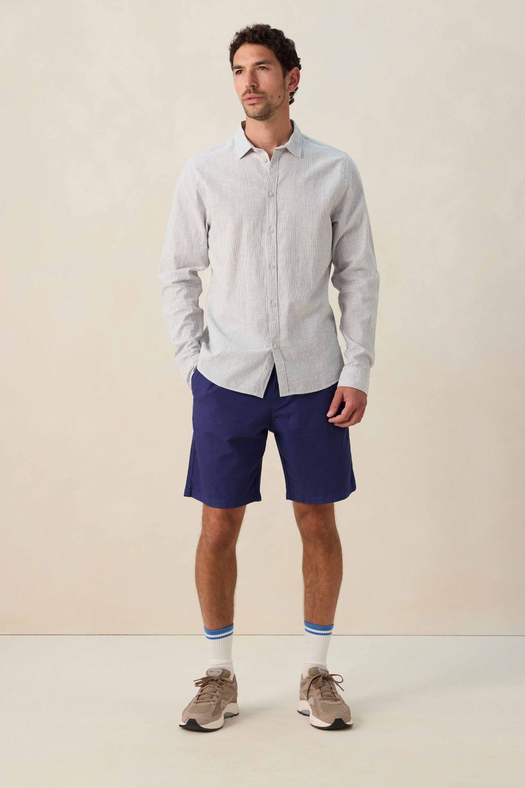 Blauw gestreept linnen overhemd