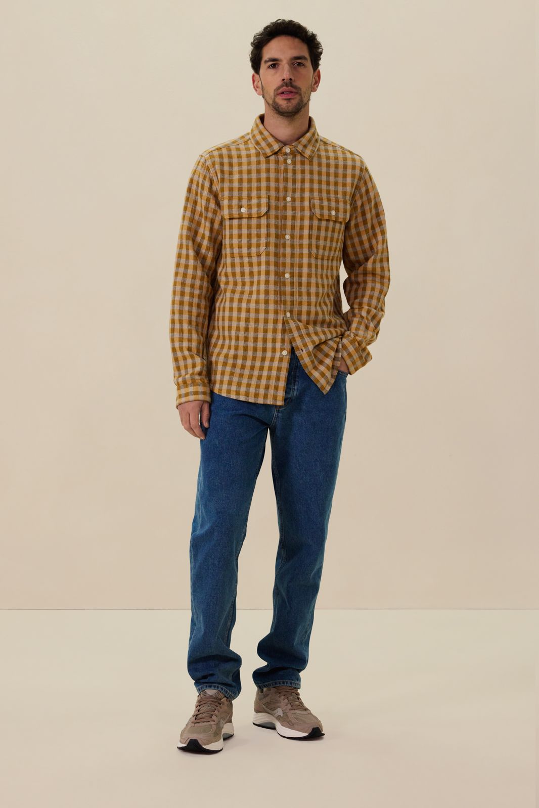 Donkergeel geruit overhemd