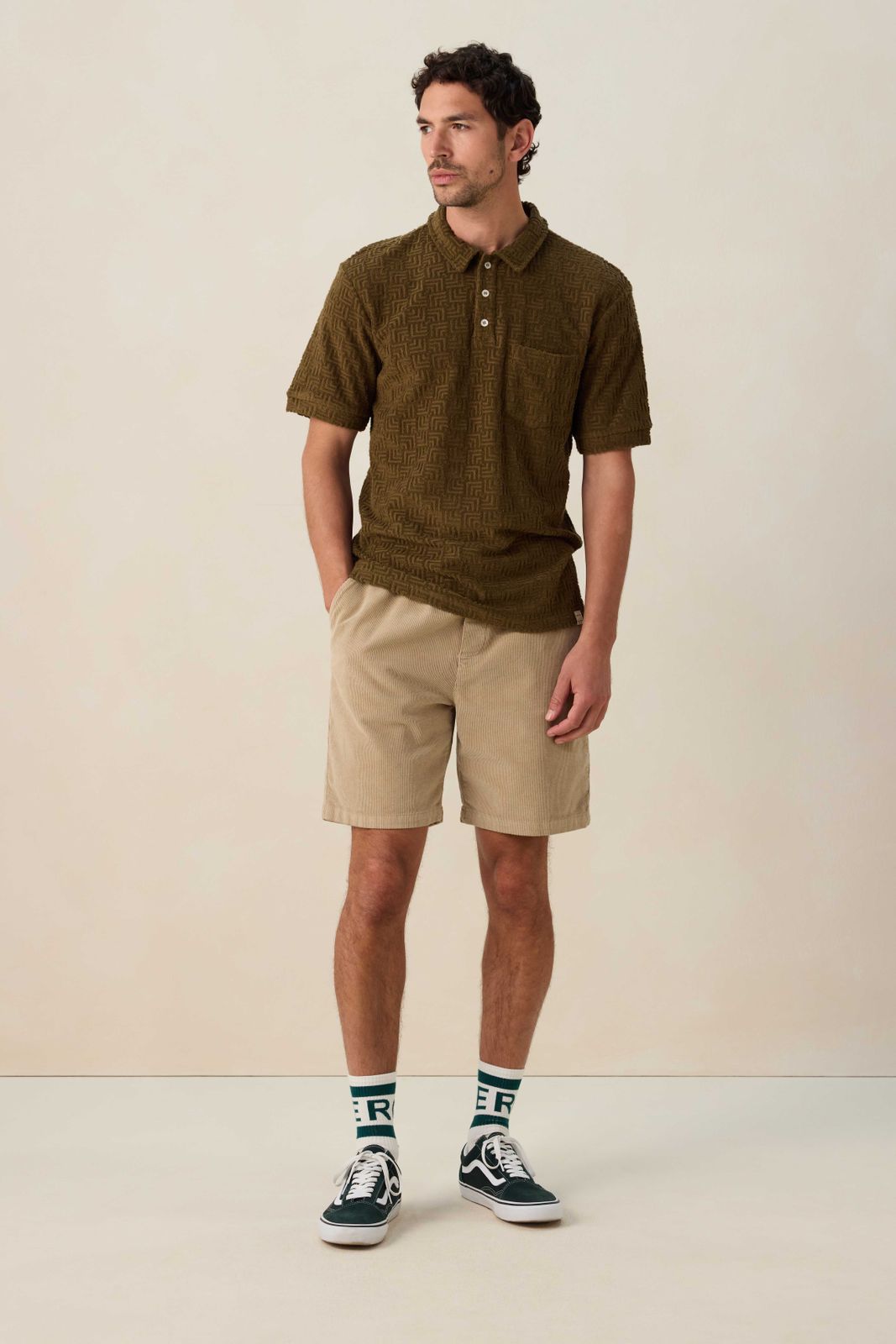 Donkergroene badstof polo