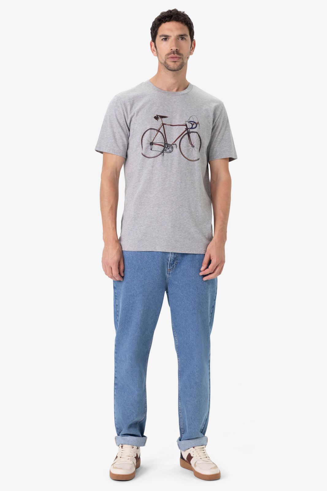 Grijs melange T-shirt met fiets