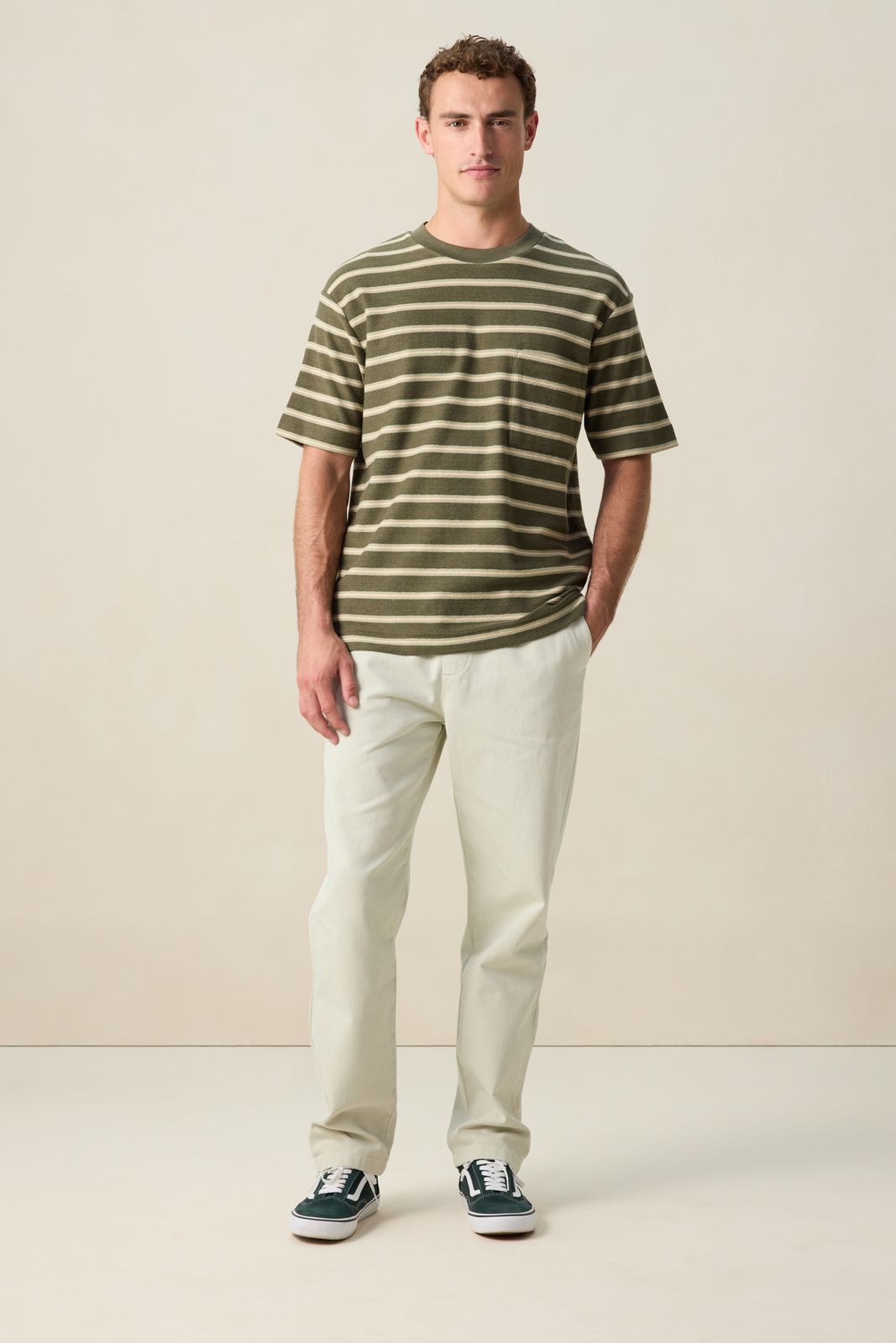 Donkergroen gestreept T-shirt