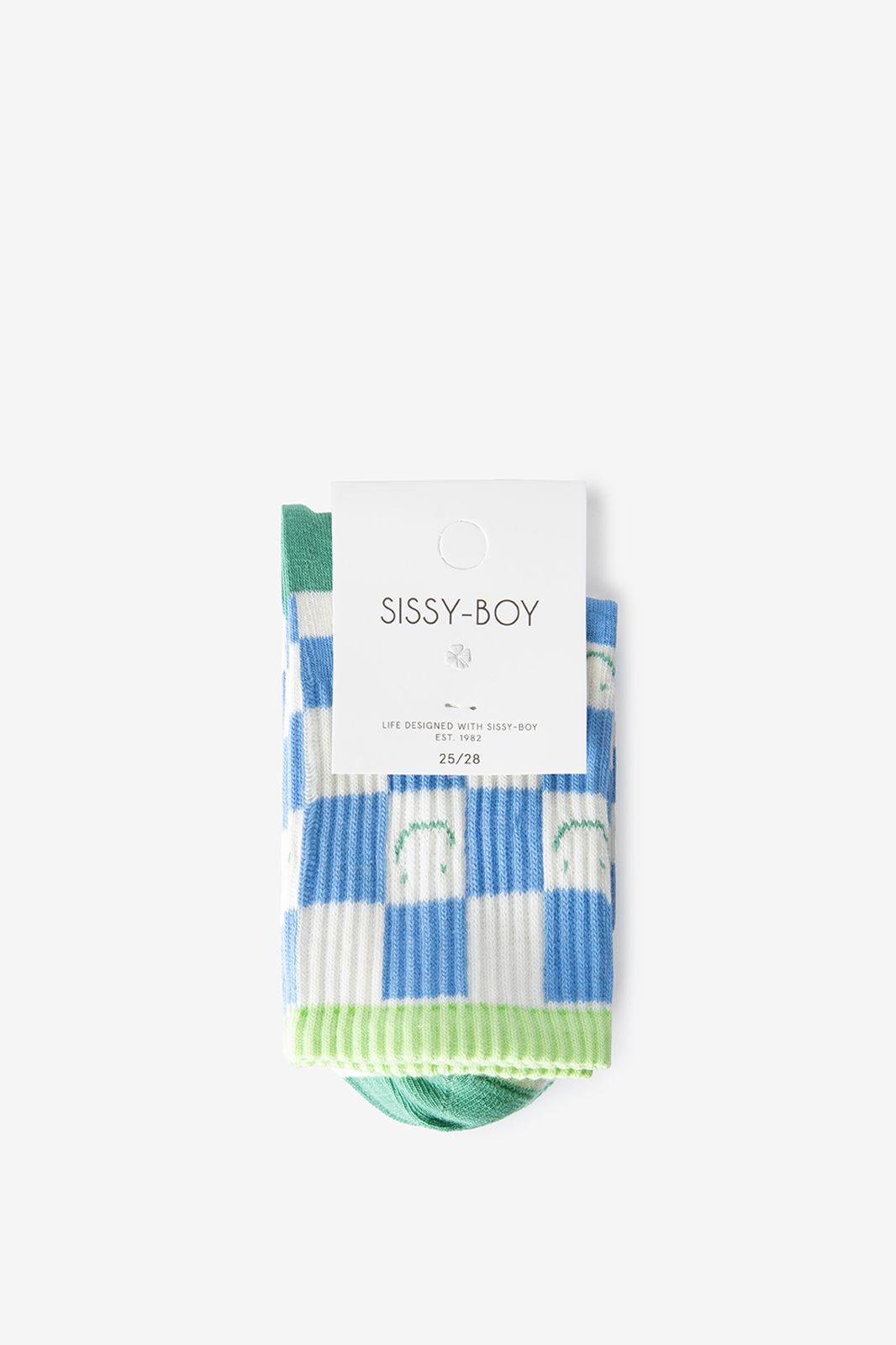 Blauwe sokken met blokjespatroon